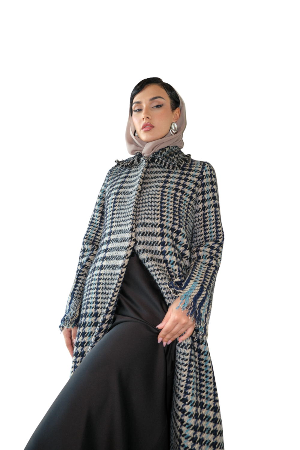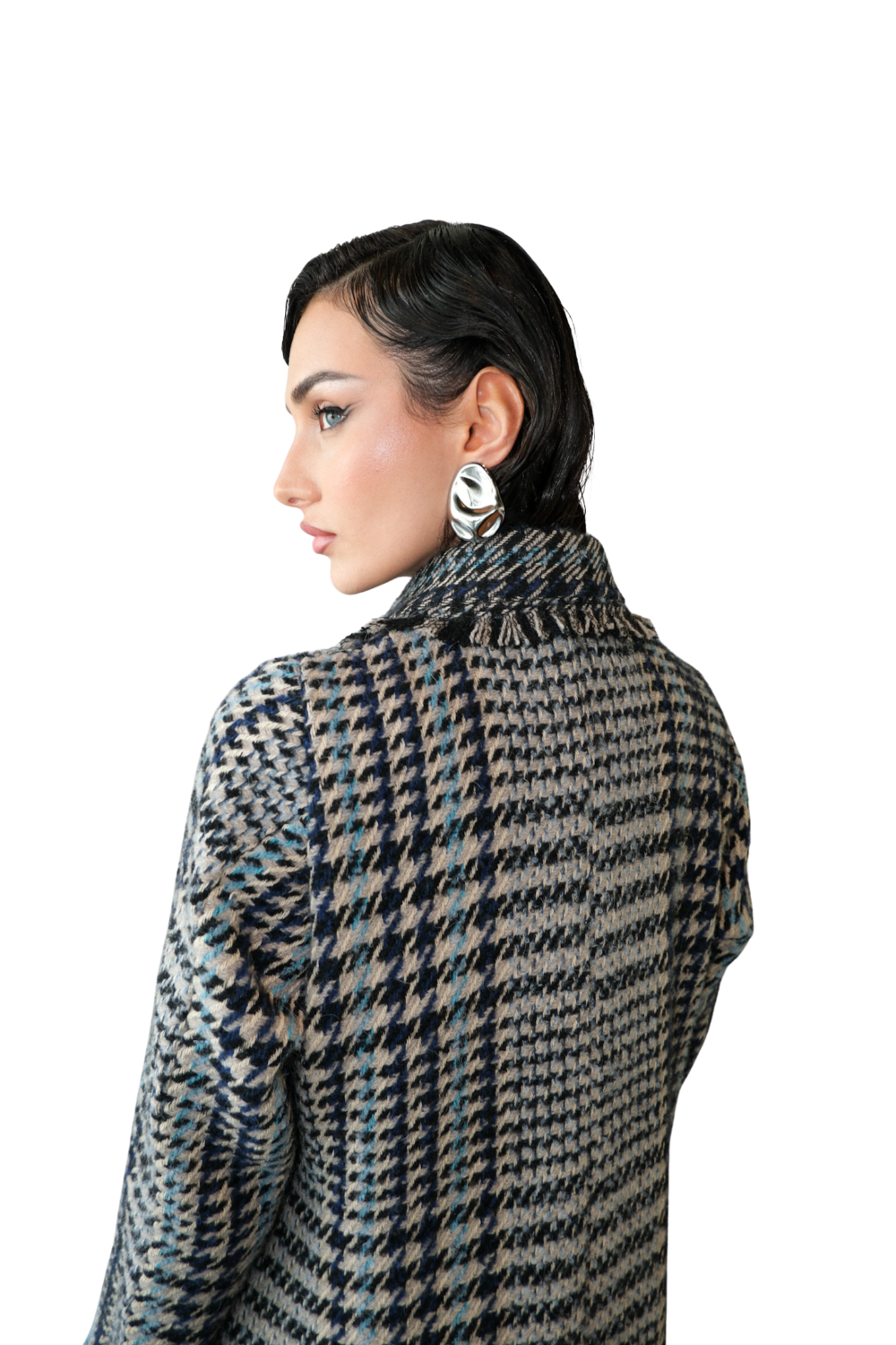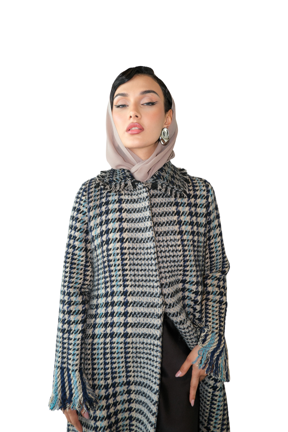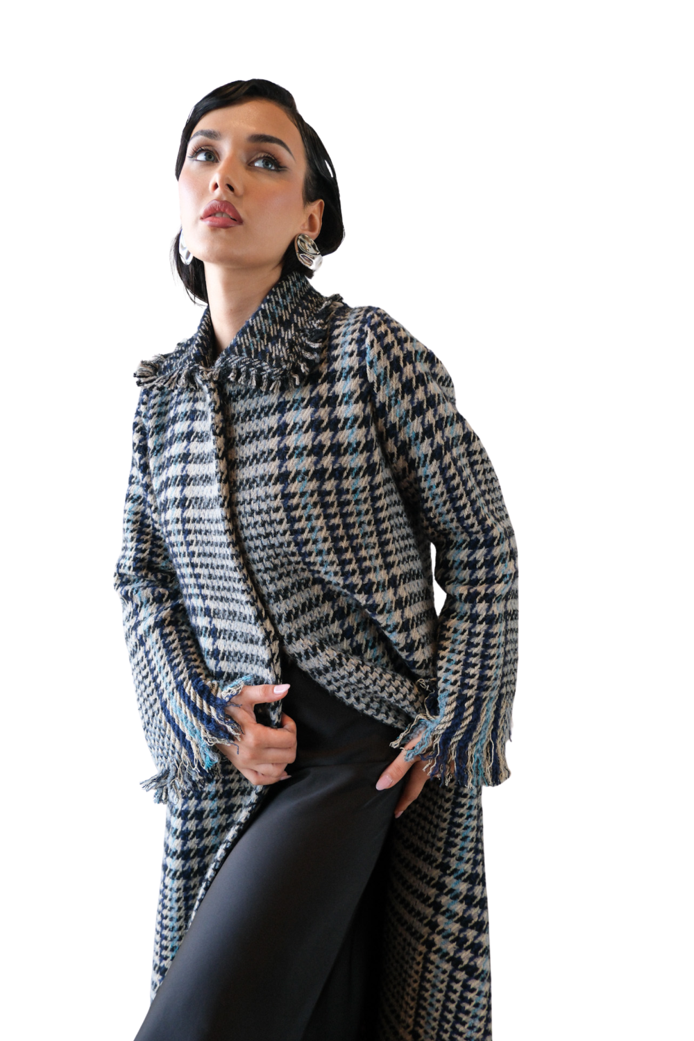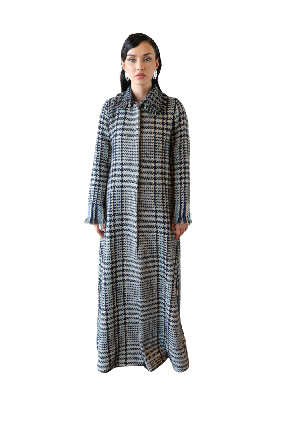 The IYONS BLUE blazer features exquisite Chanel tweed fabric sourced from Paris, embodying luxurious texture and premium quality. Expertly tailored with a classic blazer cut, it offers a structured yet elegant fit, perfect for sophisticated styling. This piece combines iconic material with refined design, making it a distinguished choice for a polished, professional wardrobe.