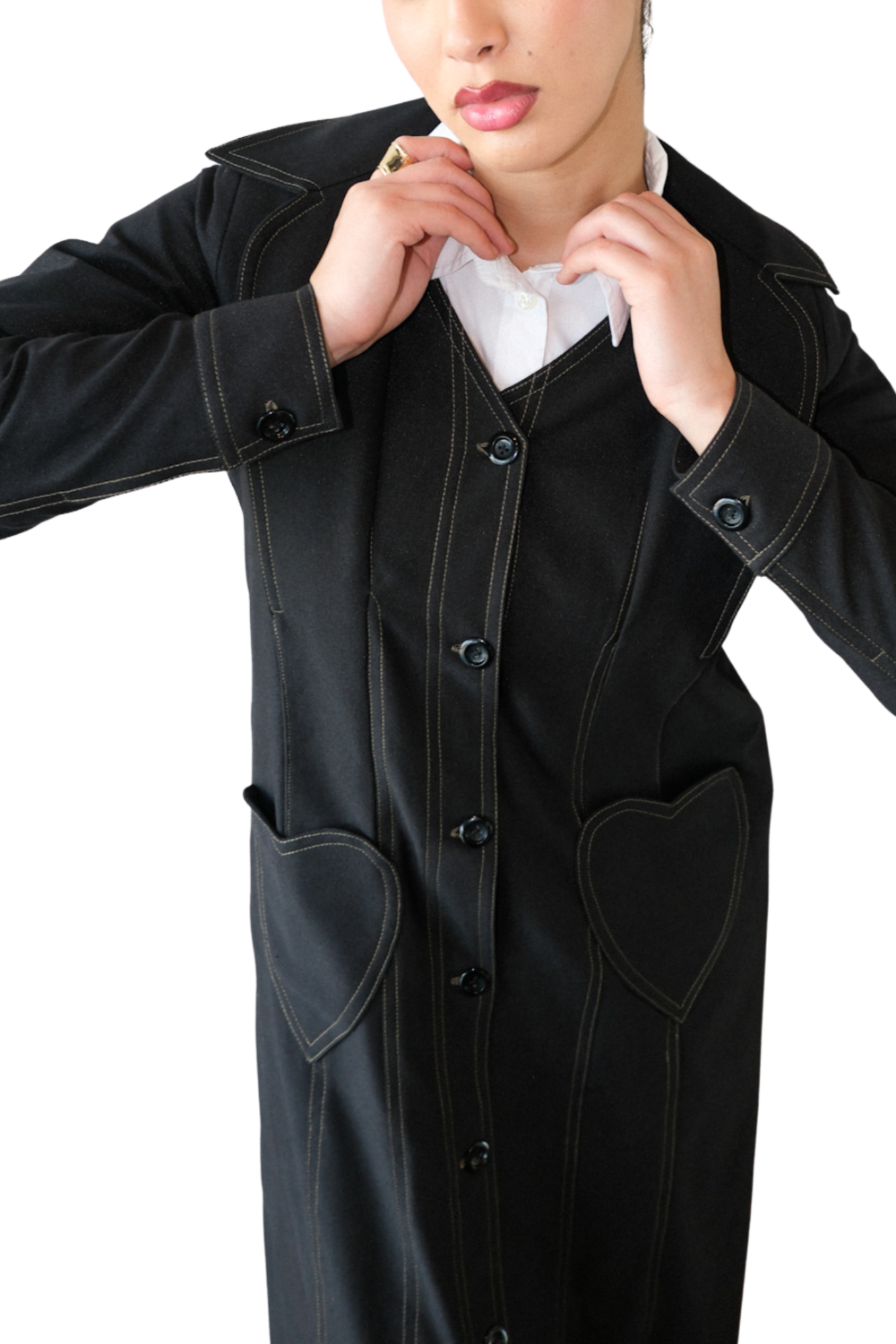 The LOVE N' DENIM blazer is crafted from high-quality black denim, combining durability with contemporary style. Its tailored blazer cut offers a sharp, structured fit that elevates casual denim into sophisticated outerwear, perfect for versatile day-to-night wear.