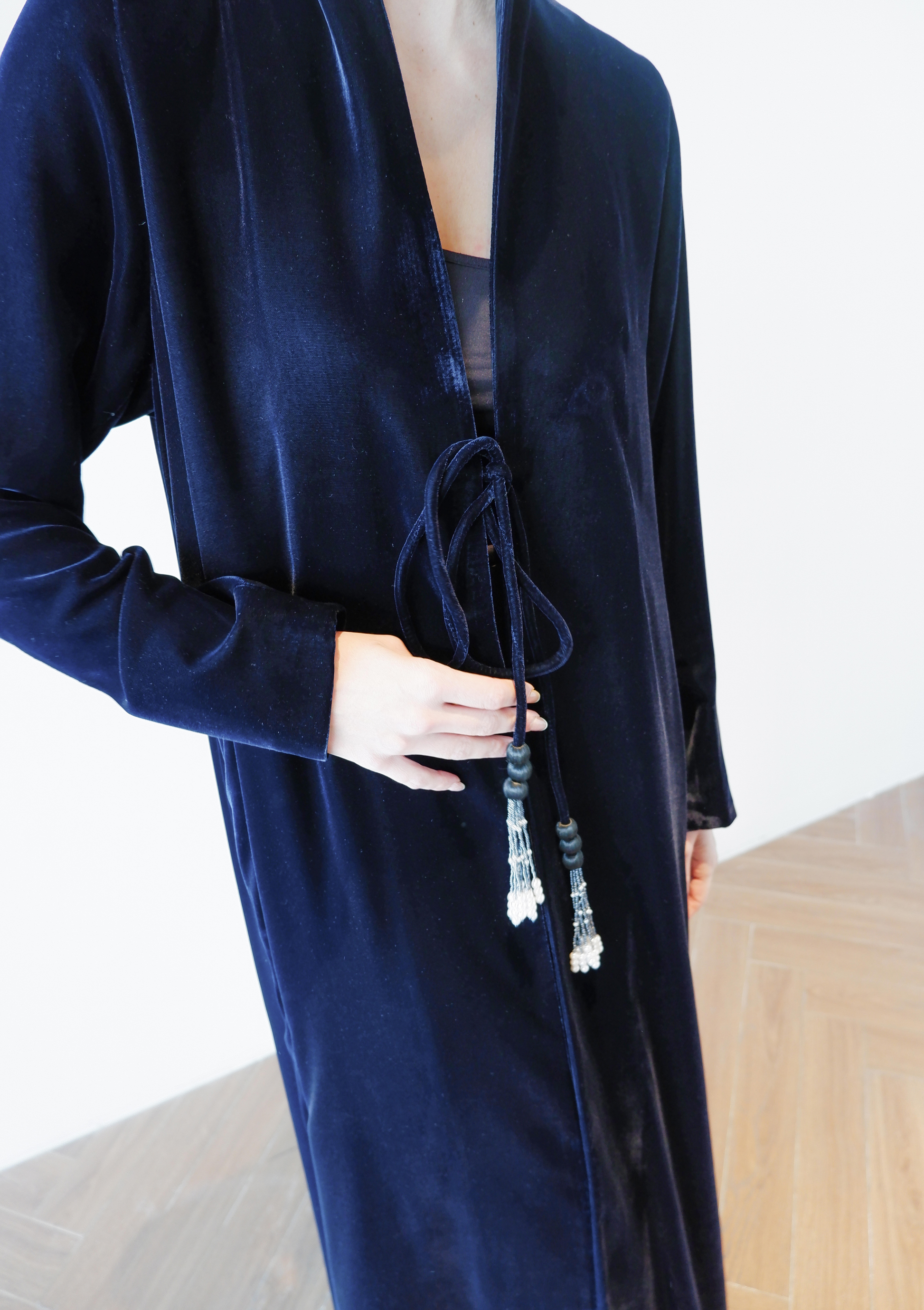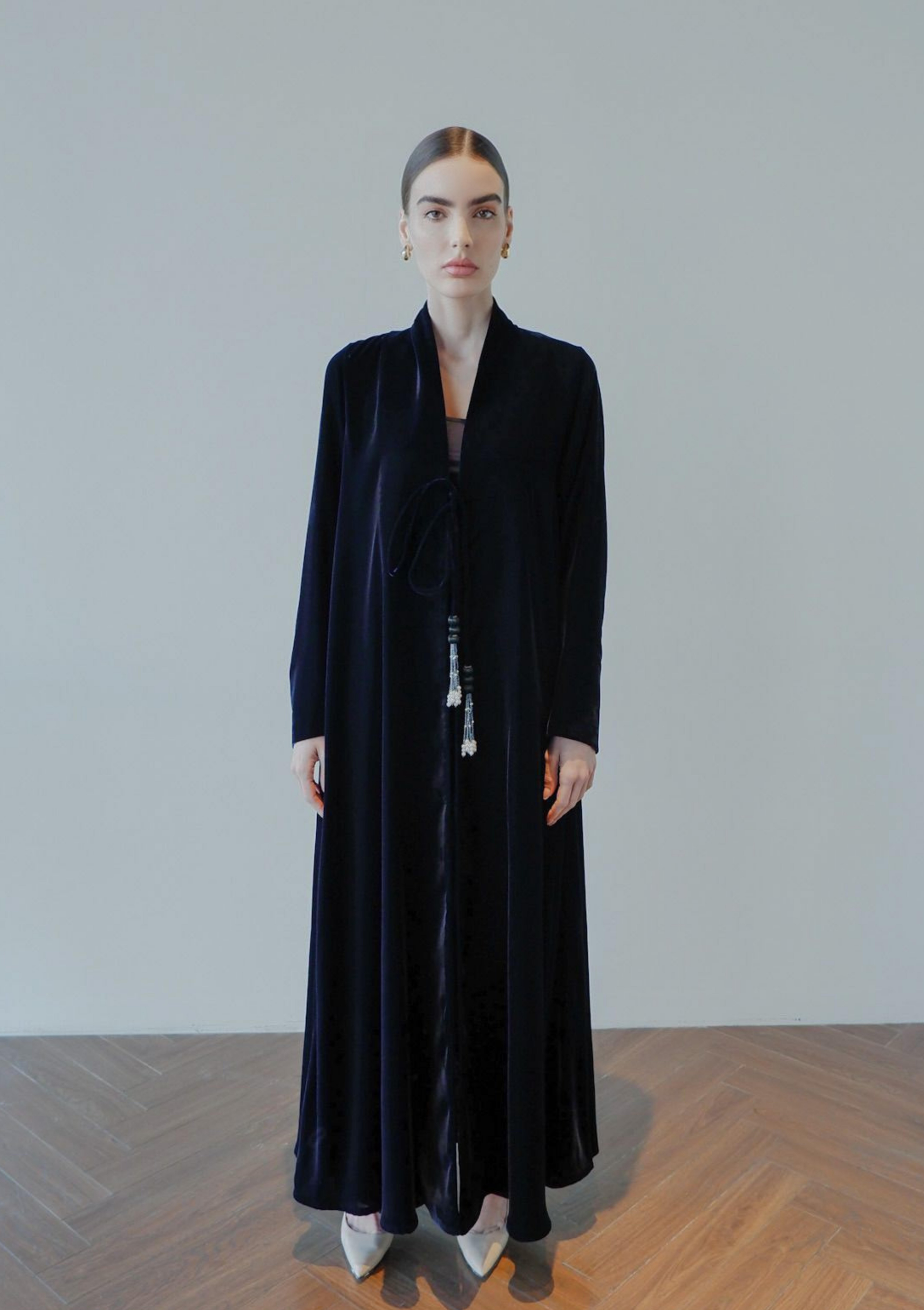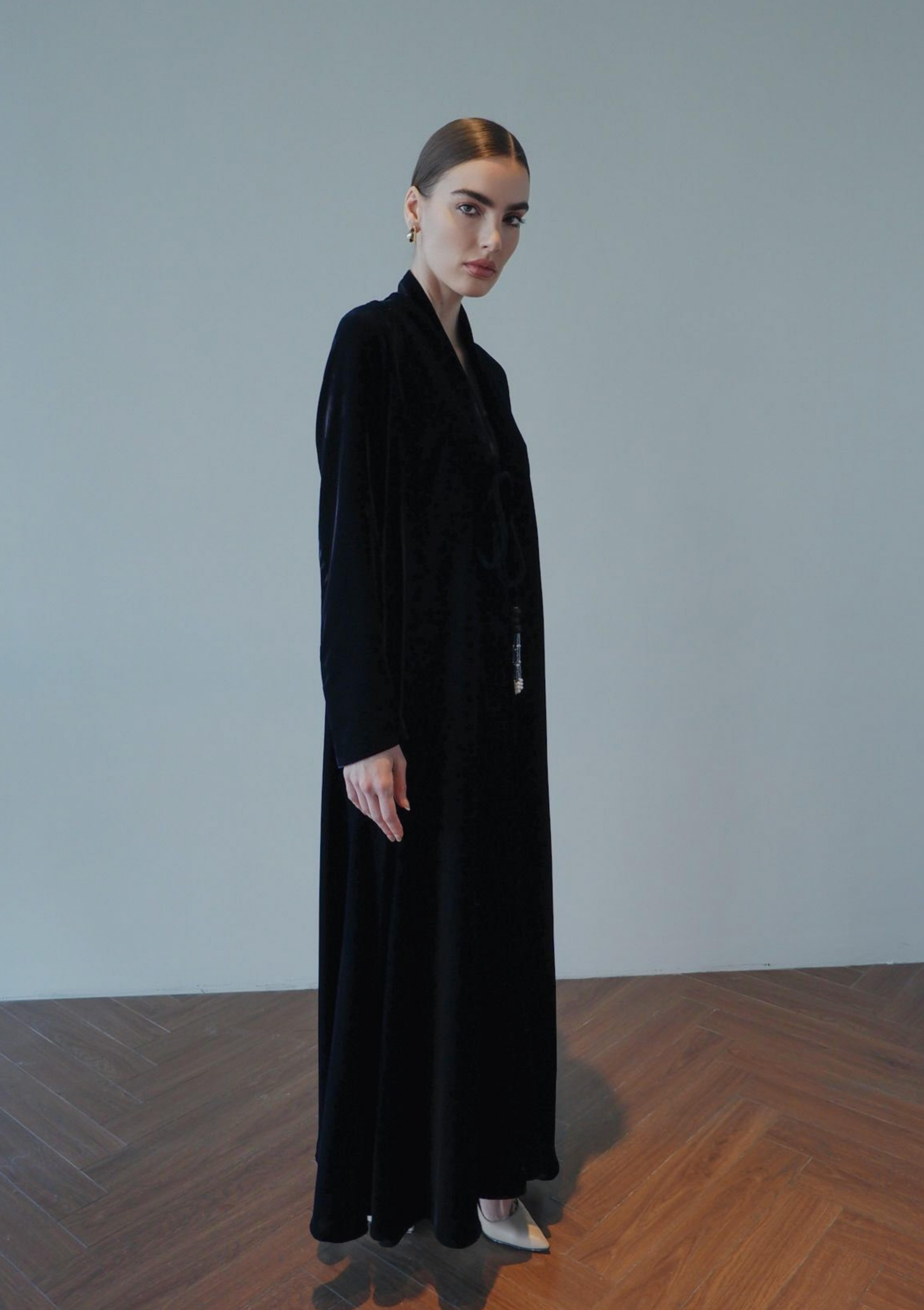 The Midnight Velvet Karkousha represents the pinnacle of luxurious modest wear, combining sumptuous velvet fabric with the timeless appeal of traditional karkousha styling. This exquisite piece features a rich midnight hue that exudes sophistication and versatility, seamlessly transitioning from evening gatherings to formal occasions.